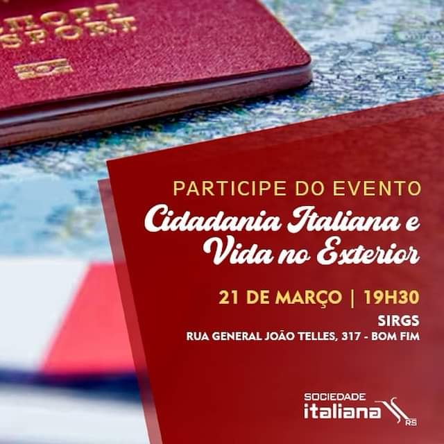 Sociedades Italiana do RS - SIRGS e de Avanti Cidadania, o evento "CIDADANIA ITALIANA E VIDA NO EXTERIOR".