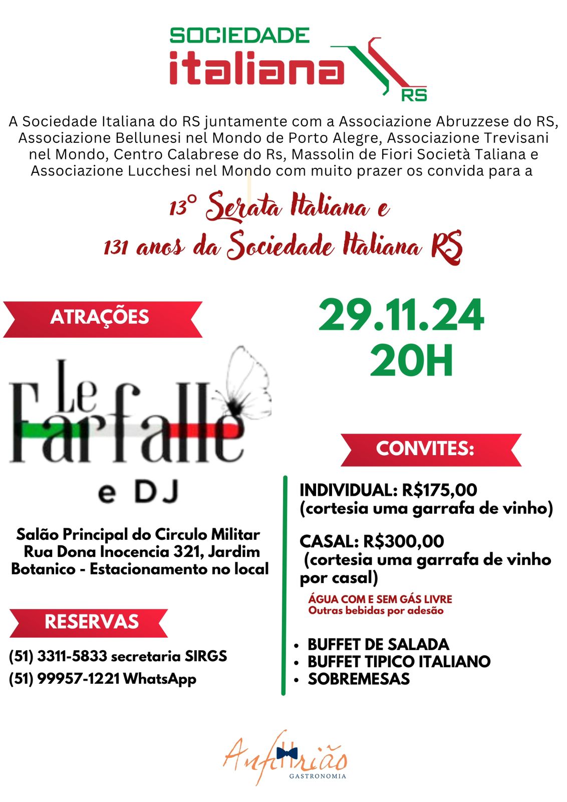LOCAL: Sociedade Italiana do RS - SIRGS (Rua João Telles, 317, Bom Fim)