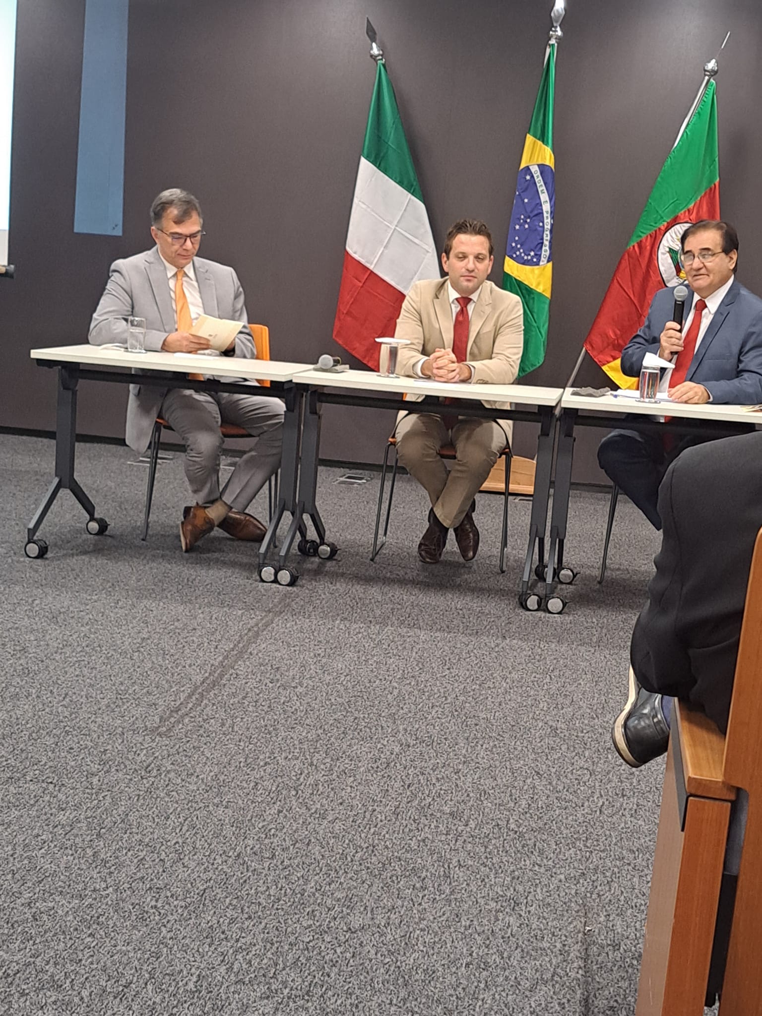 Sudbrack; o senhor Valerio Caruso, Cônsul-Geral da Itália em Porto Alegre; e o senhor Fabricio Guazzelli Peruchin, Secretário de Justiça,