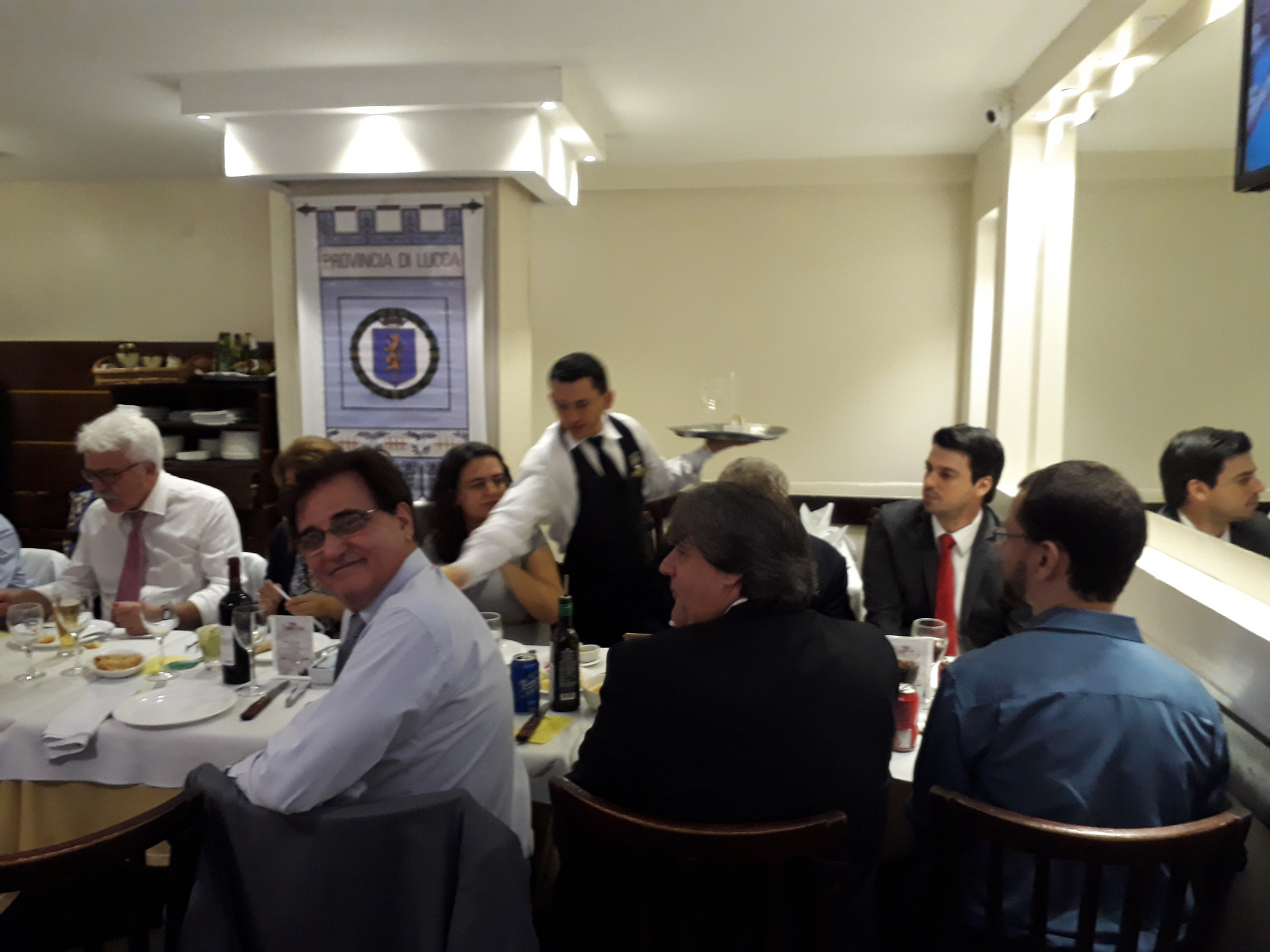 Os membros do Conselho Deliberativo e ex-presidentes da Associação Lucchesi nel Mondo di Porto Alegre Gilberto Paz Guaspari e Umberto Guaspari Sudbrack participaram de jantar de confraternização na residência do Cônsul-Geral da Itália em Porto Alegre, Nicola Occhipinti, no dia 10 de abril próximo passado, em homenagem ao advogado italiano Antonio Di Pietro, ex-Juiz atuante na Operação “Mani Pulite”, ex-Senador e ex-Ministro que veio participar de painel, em Porto Alegre, do qual participaram o Juiz Sergio Moro e o Professor da Universidade de Gênova Adriano Gianturco. Na foto, da esquerda para a direita o Sr. José Antonio Célia, presidente do Centro Calabrese, o Sr. Umberto Guaspari Sudbrack, o advogado Antonio Di Pietro, o Sr. Gilberto Paz Guaspari, o jornalista Elói Zorzetto, o Sr. Nicola Occhipinti, Cônsul-Geral da Itália, e o Sr. Carmine Motta, do Centro Calabrese.