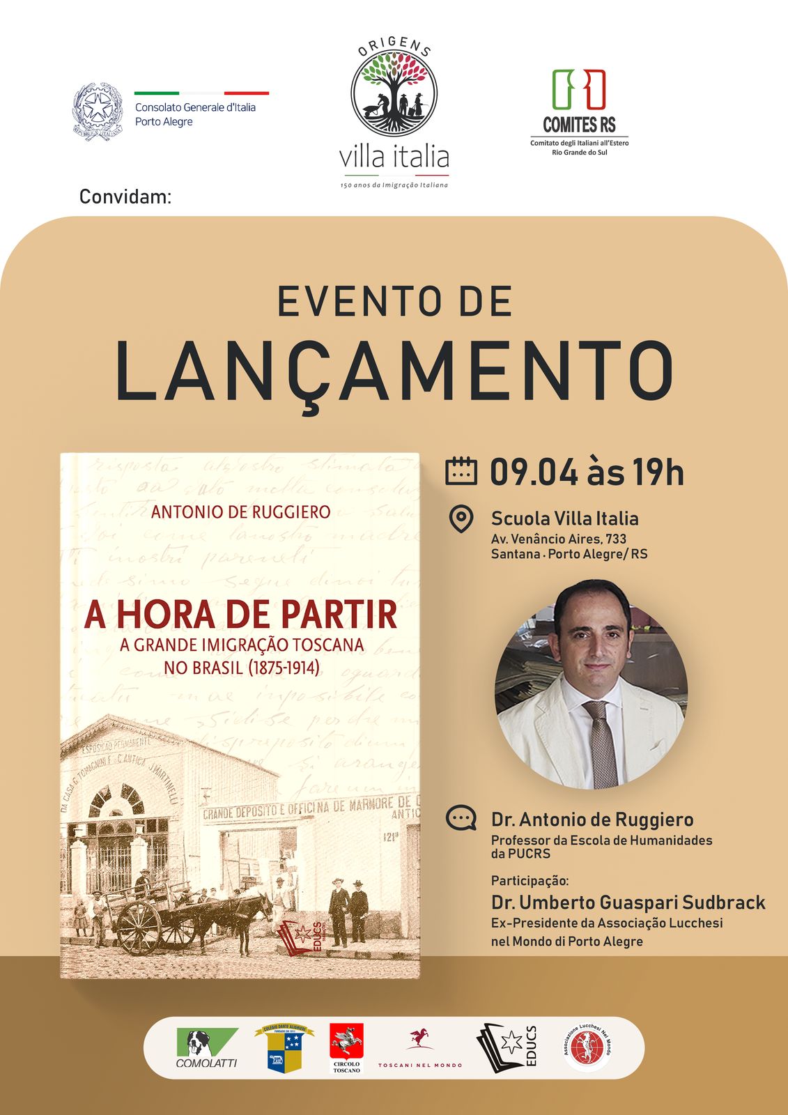 na Sociedade Italiana do RS, no dia 28 de Agosto, às 20h.
